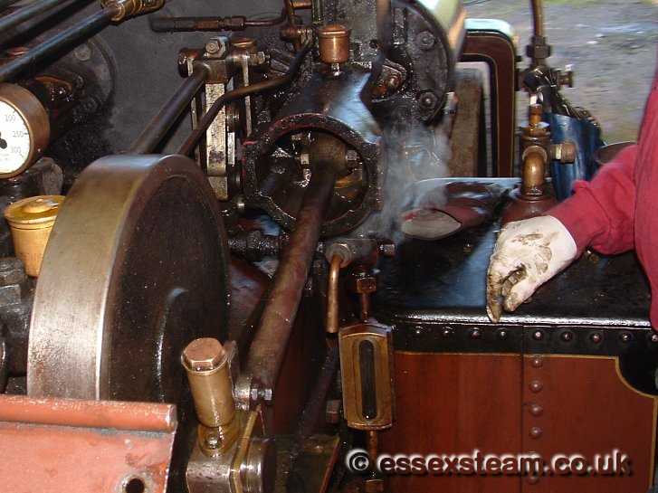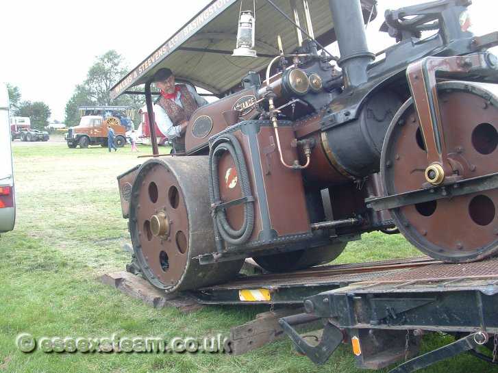 Well we made it to Barleylands safely, despite losing a boiler tube a couple of weeks ago. Preparing for a nice quiet steam trip for Ian and Sylvia B we heard the dreaded hissing from the firebox, and a quick visual check showed that nasty black patch in the fire and water running down the throatplate. Due to the build of the engine we could only get the tubes out by removing the yoke and front roller. By removing the pivot pin while suspending the smokebox from a gantry we were able to block up the front of the boiler and roll the front roller and yoke out as one piece. That gives good access to the smokebox to remove the old tubes. We got the boiler inspector in to have a look at the tube plates and shell while they were exposed. Everything was in order, but we took the opportunity to do a little 'make-good' on on or two rivet heads on the front tube plate. Our helpful tube suppliers were able to get a set of tubes for us quite quickly and we got them fitted and tested just in time for the Essex steam show at Barleylands.
